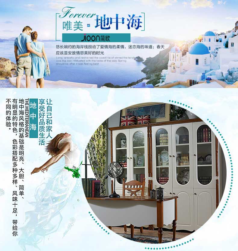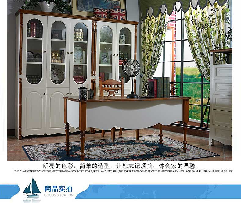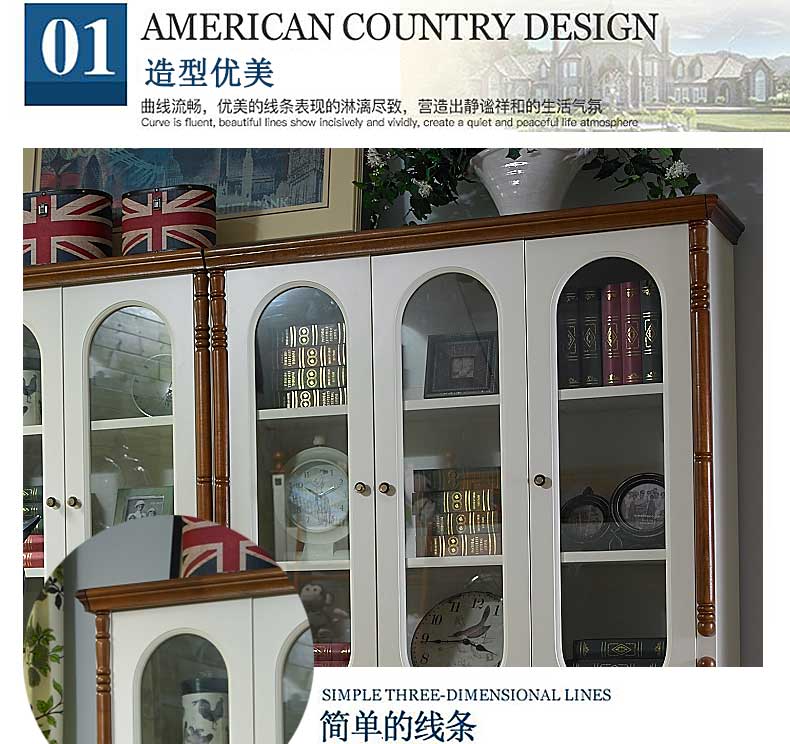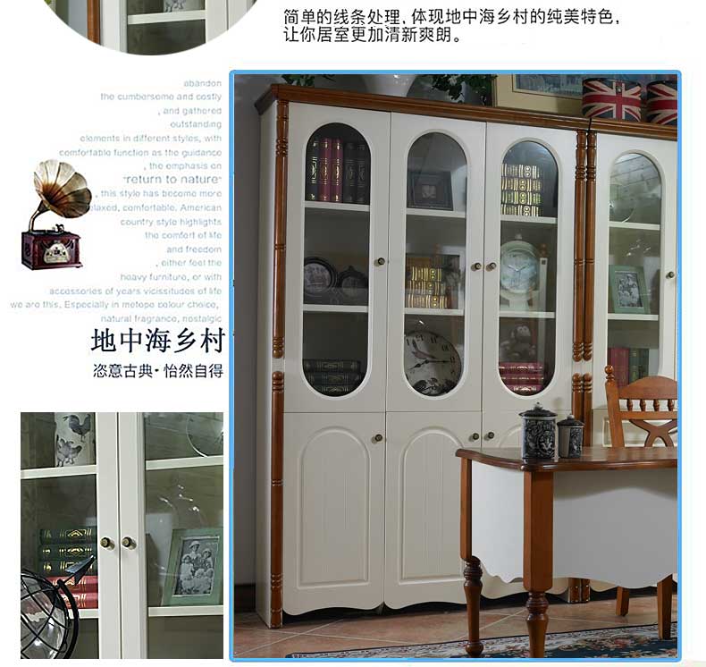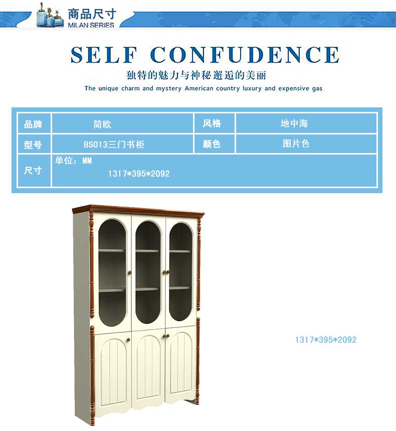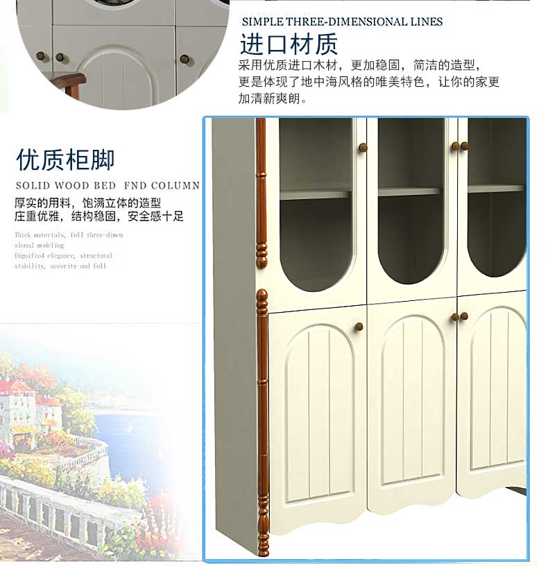 简欧新款地中海田园储物柜客厅收纳柜书橱书架BS013 三门书柜