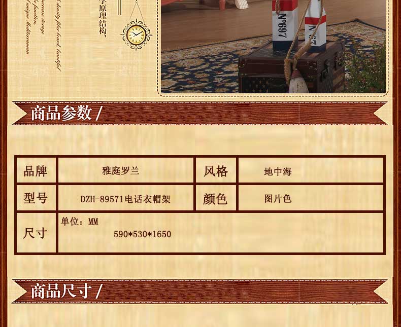 雅庭罗兰 新款电话衣帽架地中海边几木质装饰柜 DZH-89571