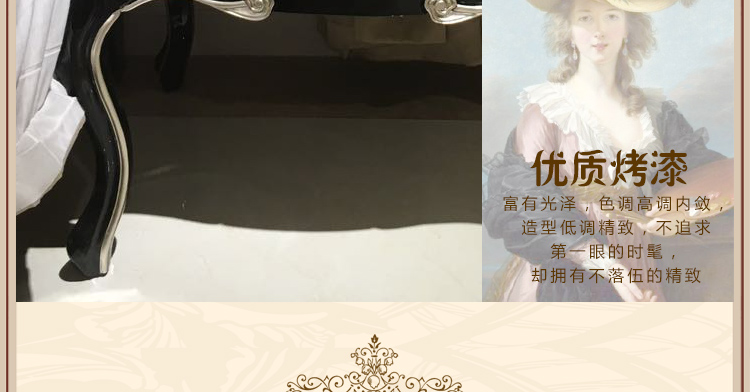 法式家具十分推崇优雅、高贵和浪漫,它是一种基于对理想情景的考虑,追求建筑的诗意、诗境,力求在气质上给人深度的感染。艺术风格最集中体现在家具的设计方面,要特征在于布局上突出轴线的对称,恢宏的气势,高贵典雅。细节处理上注重雕花、线条,制作工艺精细考究。