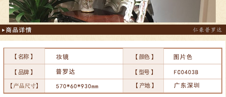普罗达法派系列卧室必备妆镜高档风格经典实用梳妆镜FC0403B妆镜