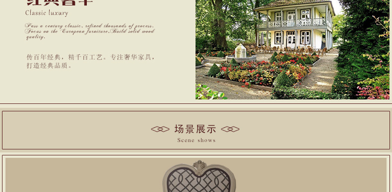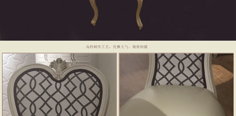 法式家具十分推崇优雅、高贵和浪漫,它是一种基于对理想情景的考虑,追求建筑的诗意、诗境,力求在气质上给人深度的感染。艺术风格最集中体现在家具的设计方面,要特征在于布局上突出轴线的对称,恢宏的气势,高贵典雅。细节处理上注重雕花、线条,制作工艺精细考究。