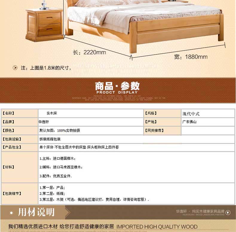华逸轩德国榉木全实木大床1.8米双人床婚床成人床2米简易大ws519