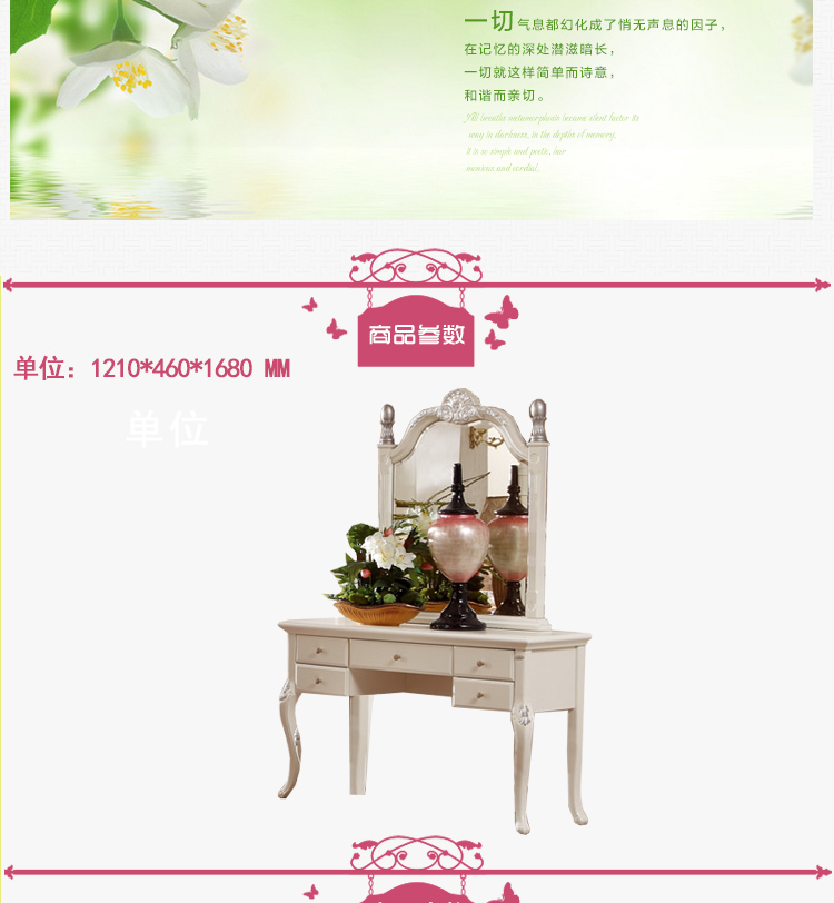雅庭罗兰 新款妆台 韩式风格简约妆台 高档卧室妆台 YT-9217