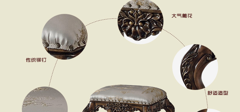 普罗达秋韵金栗系列梳妆凳化妆凳时尚法式奢华换鞋凳美甲凳雕花梳妆小凳子PE05-06