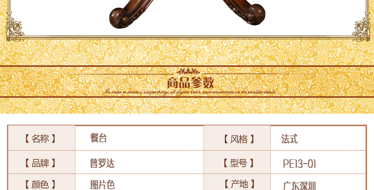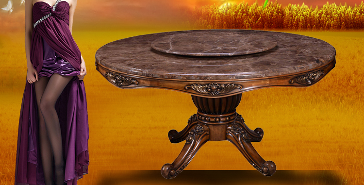 普罗达秋韵金栗系列法式圆桌 圆餐桌组合 全实木圆餐桌 理石圆形餐桌PE13-01