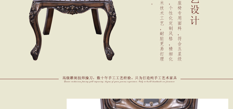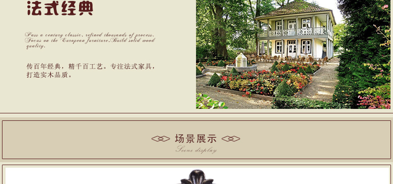 法式家具十分推崇优雅、高贵和浪漫,它是一种基于对理想情景的考虑,追求建筑的诗意、诗境,力求在气质上给人深度的感染。艺术风格最集中体现在家具的设计方面,要特征在于布局上突出轴线的对称,恢宏的气势,高贵典雅。细节处理上注重雕花、线条,制作工艺精细考究。