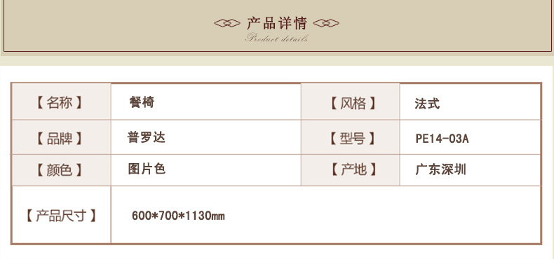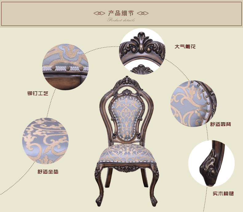 普罗达秋韵金栗系列酒店椅古典实木雕花餐椅法式洽谈靠背椅子PE14-03A