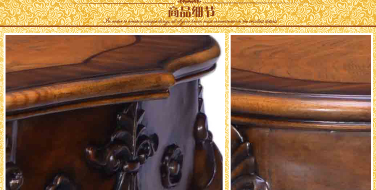 法式家具十分推崇优雅、高贵和浪漫,它是一种基于对理想情景的考虑,追求建筑的诗意、诗境,力求在气质上给人深度的感染。艺术风格最集中体现在家具的设计方面,要特征在于布局上突出轴线的对称,恢宏的气势,高贵典雅。细节处理上注重雕花、线条,制作工艺精细考究。