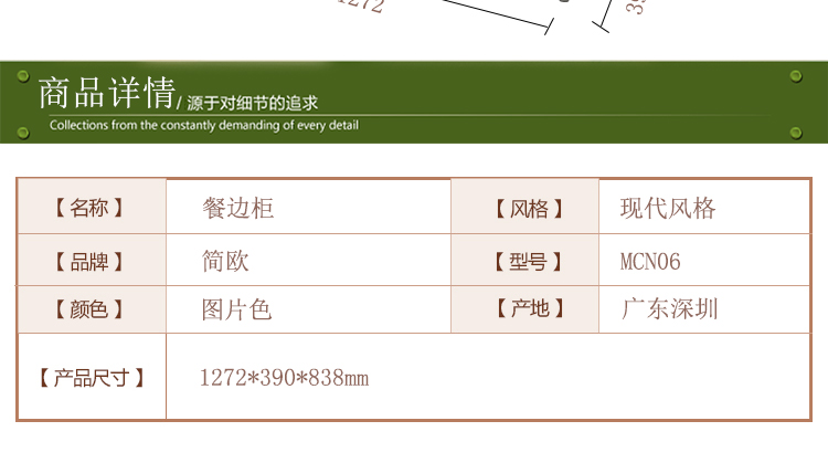 外围尺寸:MCN06餐边柜1272*390*838mm