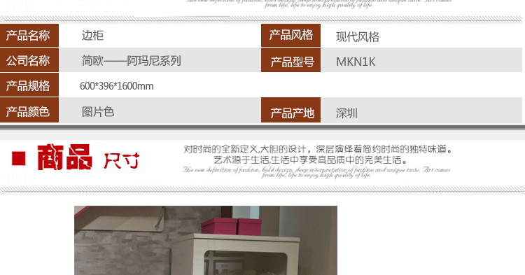 外围尺寸:MKN1K组合边柜600*396*1600mm