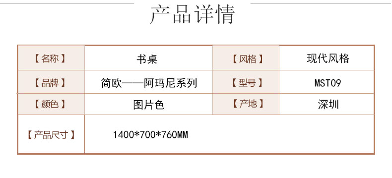 外围尺寸:MST09书桌1400*700*760mm