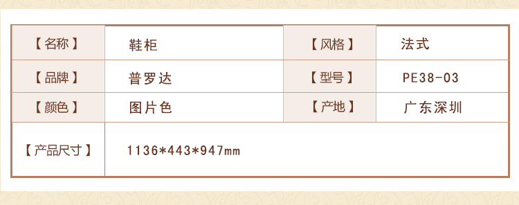 普罗达秋韵金栗系列法式实木环保鞋柜简约玄关门厅柜对开门大容量储物柜鞋厨PE38-03