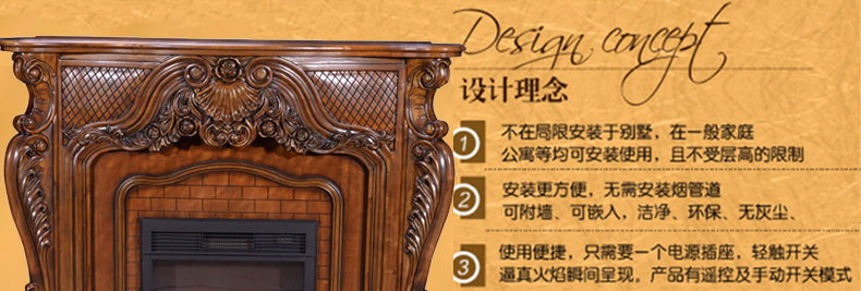 普罗达秋韵金栗系列法式壁炉芯实木壁炉心取暖电视柜电壁炉壁炉架PE46-01