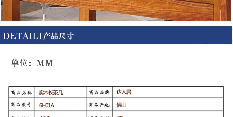 达人居 中式实木长茶几 老橡木茶几 客厅会客茶桌6h01a
