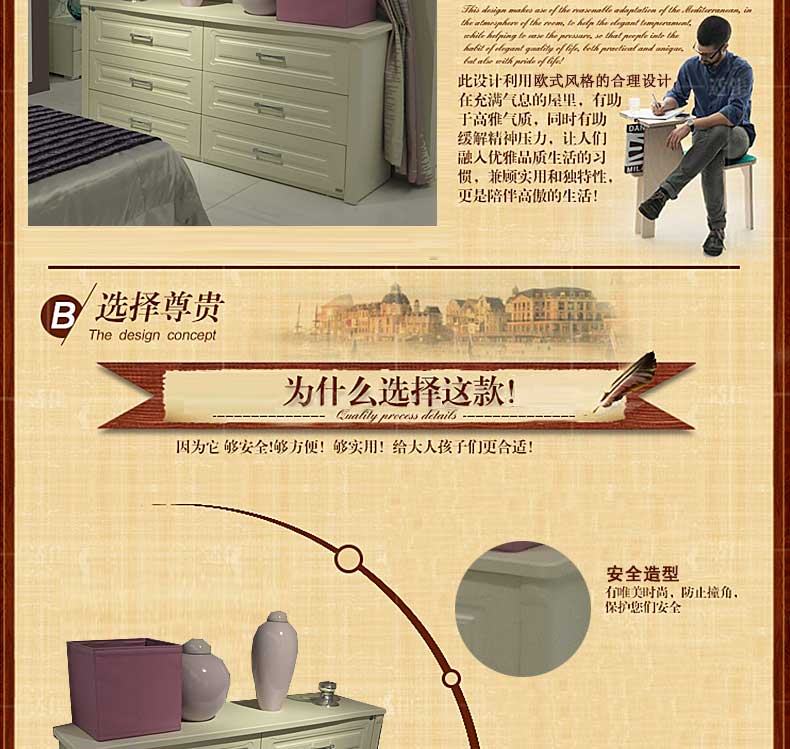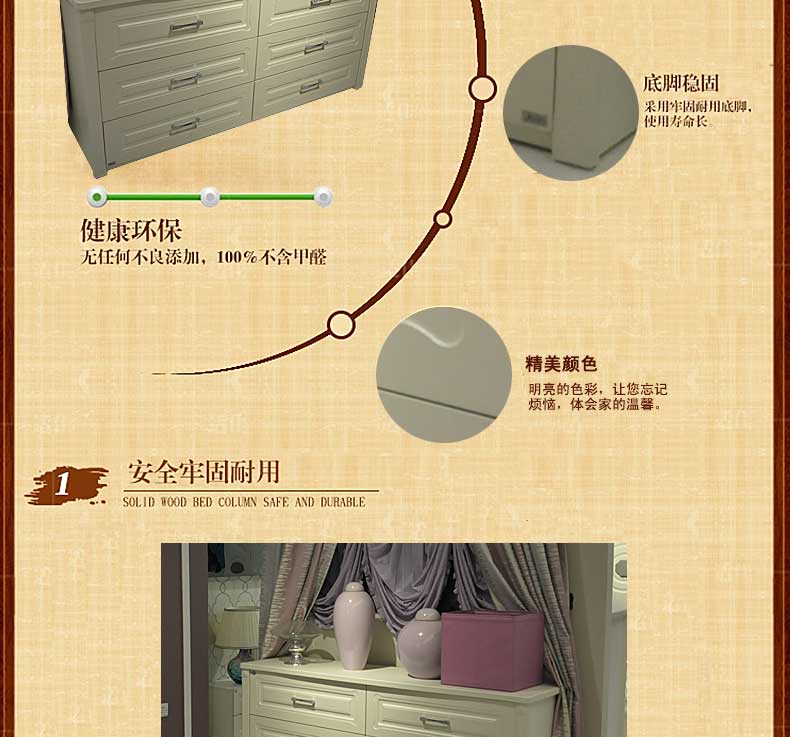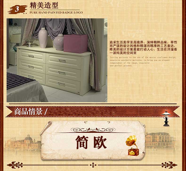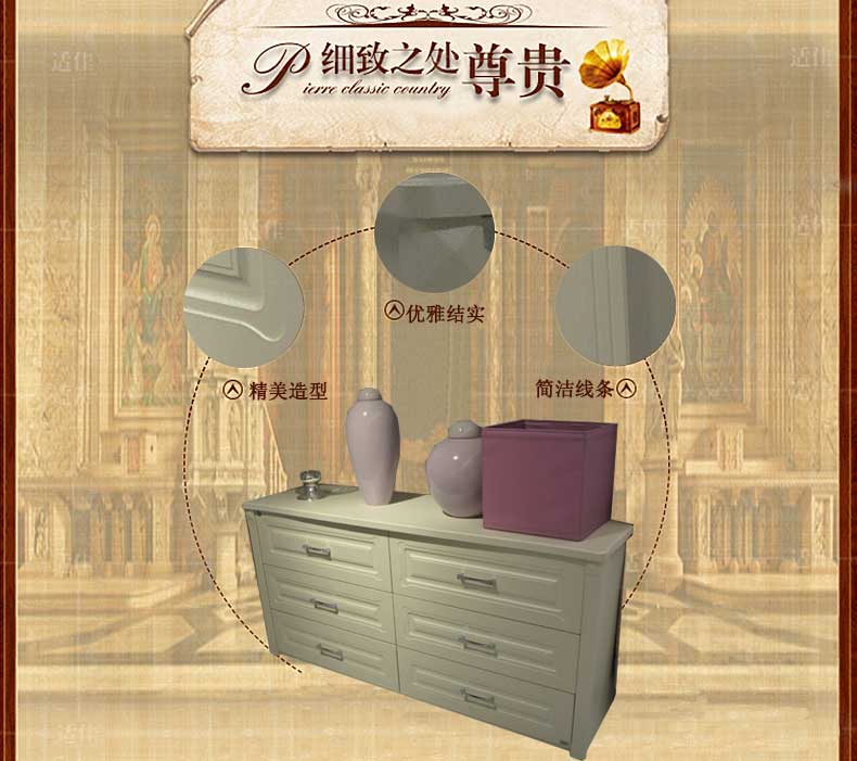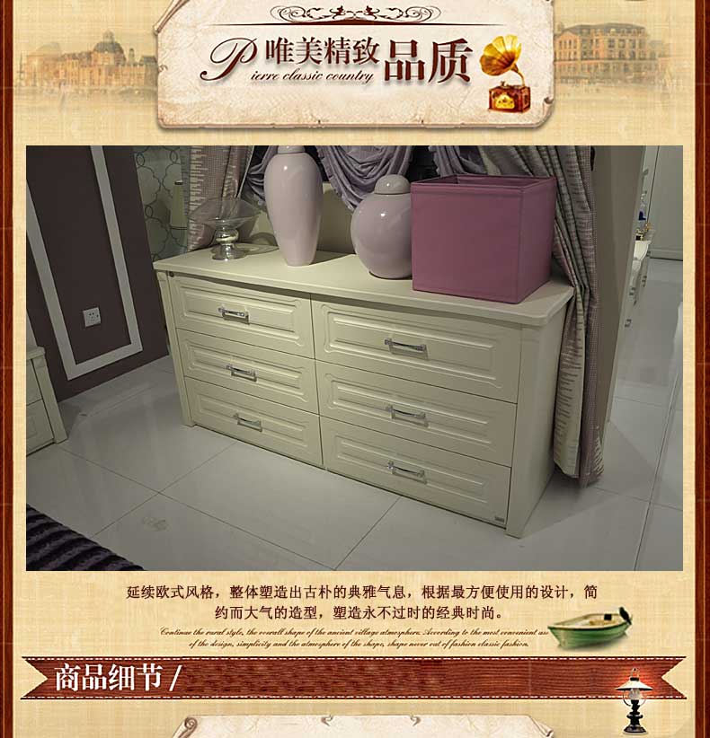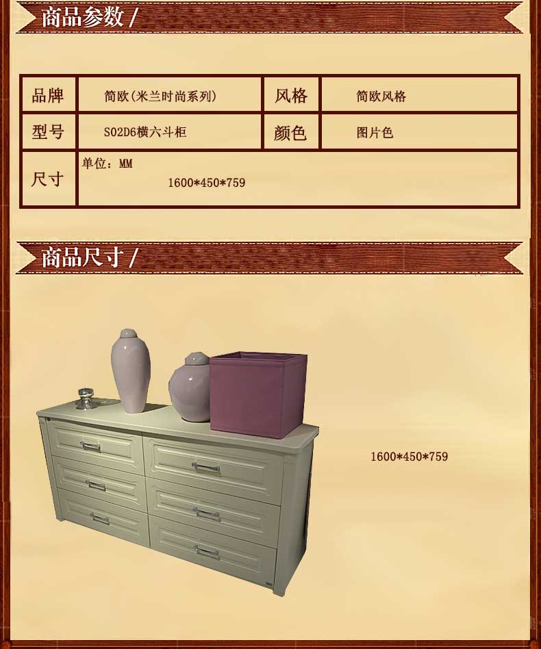 简欧新款卧室斗柜简欧风格装饰柜储物柜米兰时尚系列S02D6 横六斗柜