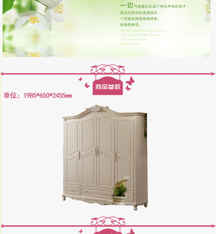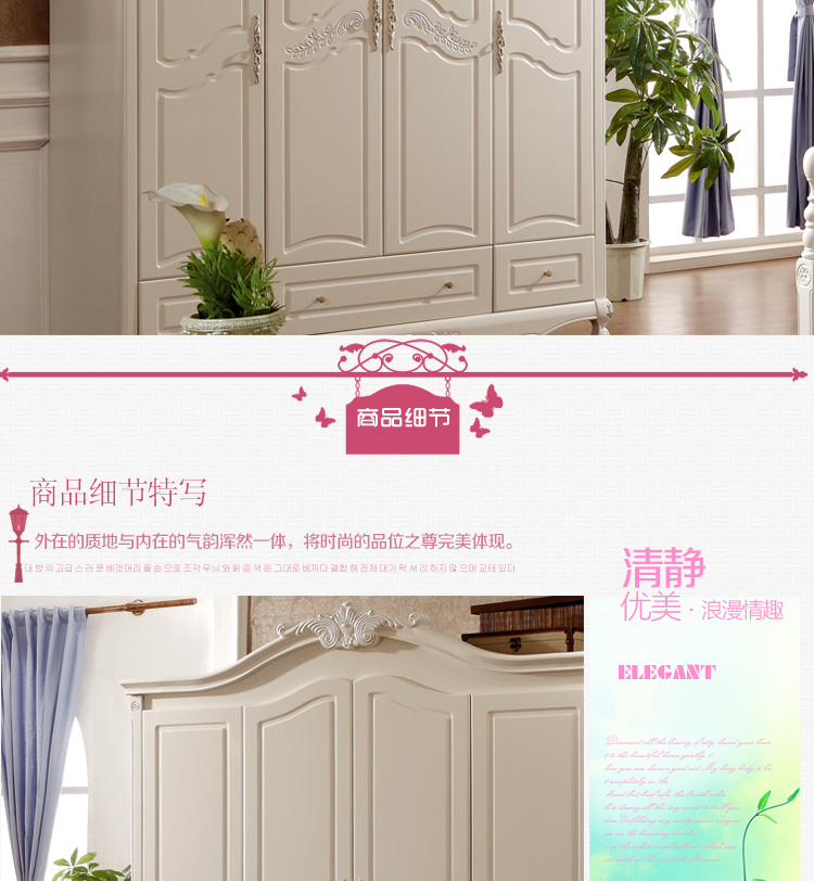雅庭罗兰 高档简约四门衣柜韩式风格衣柜 新款衣柜组合储藏柜 YT-9136