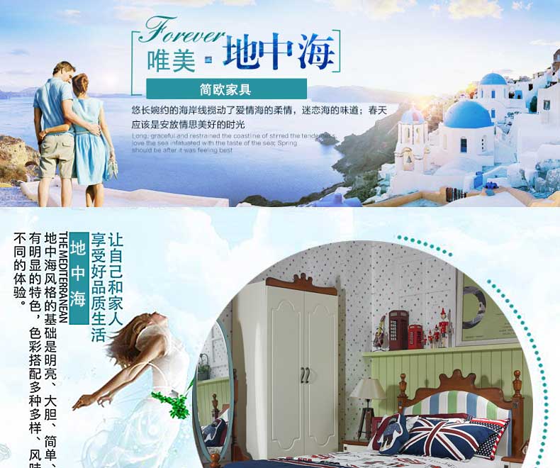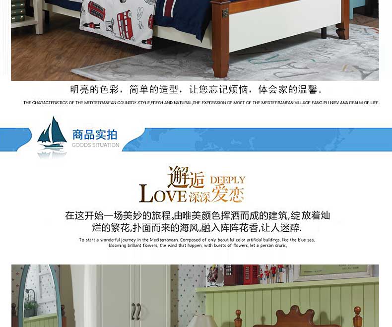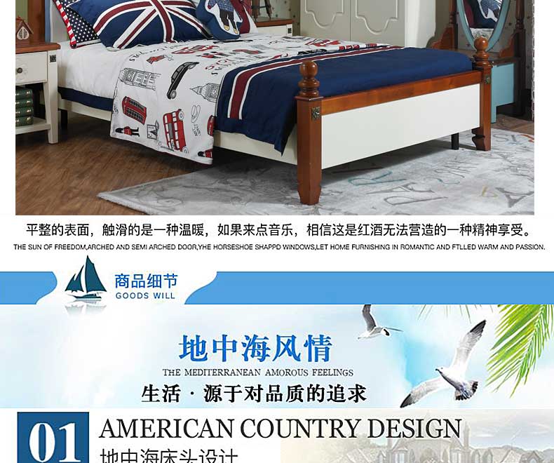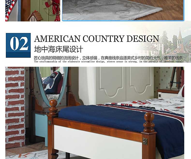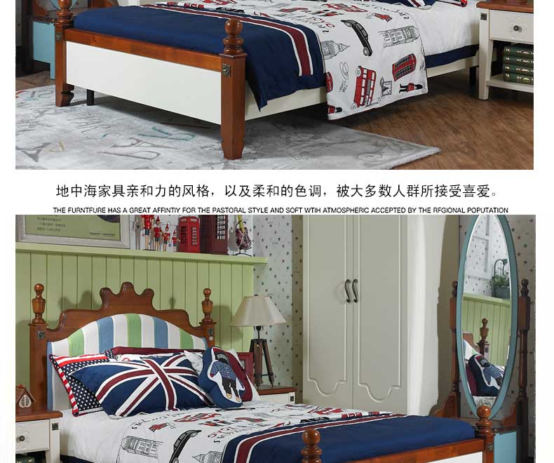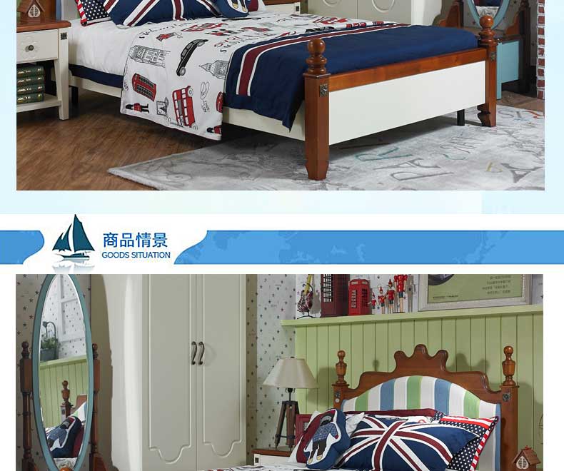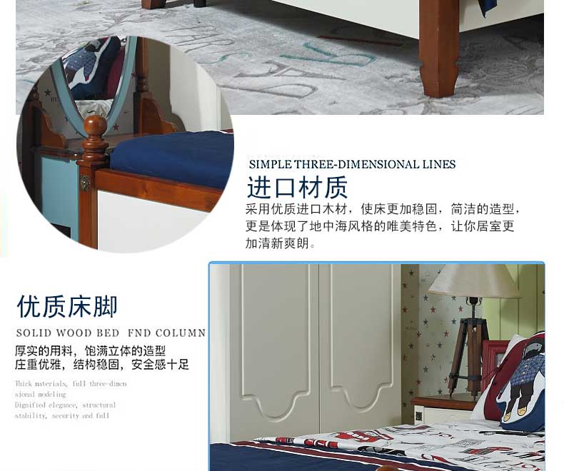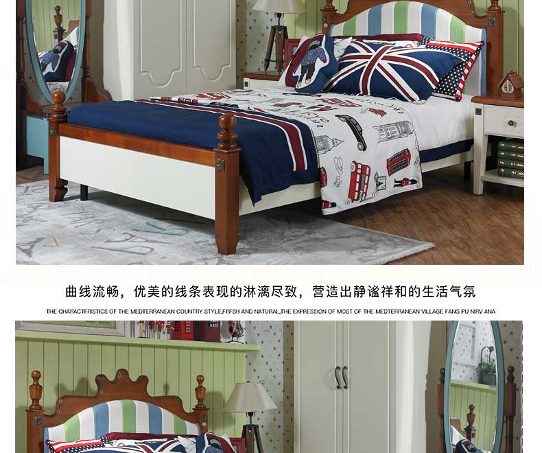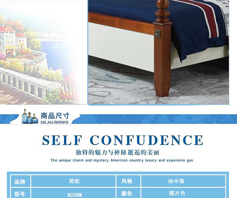 简欧 卧室双人床木质床地中海大床1.5米1.23米床 B05BM