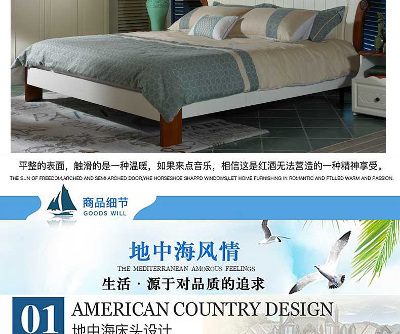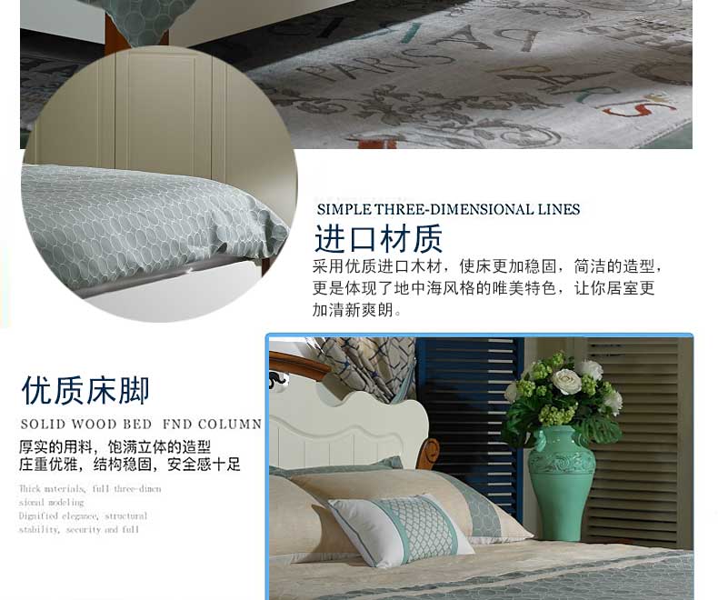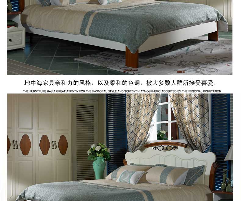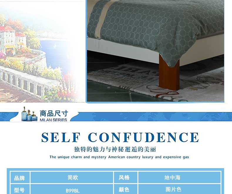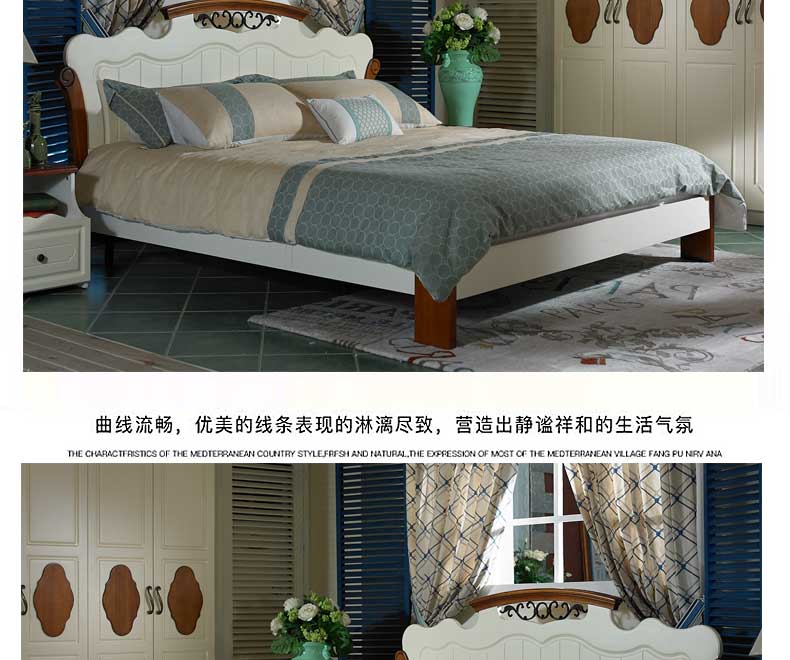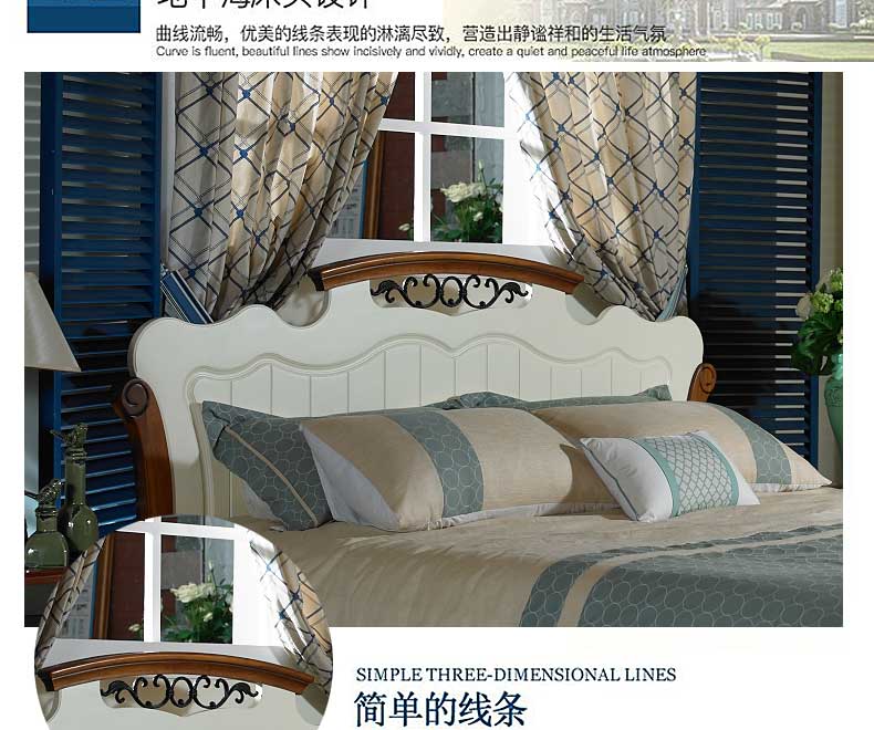 简欧 新款双人床卧室木质床地中海大床 B99BL