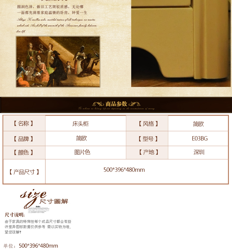 简欧 高档卧室床头柜 简约简欧风格储藏柜床头柜 新款柜子 E03BG