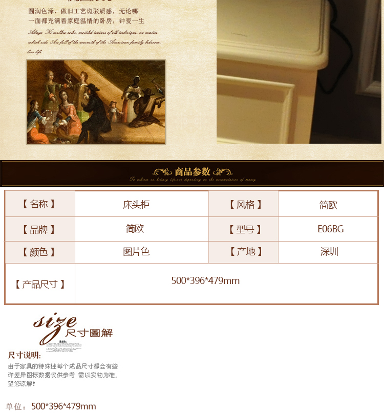 简欧 韩版风格床头柜 高档卧室床头柜 新款柜子 E06BG