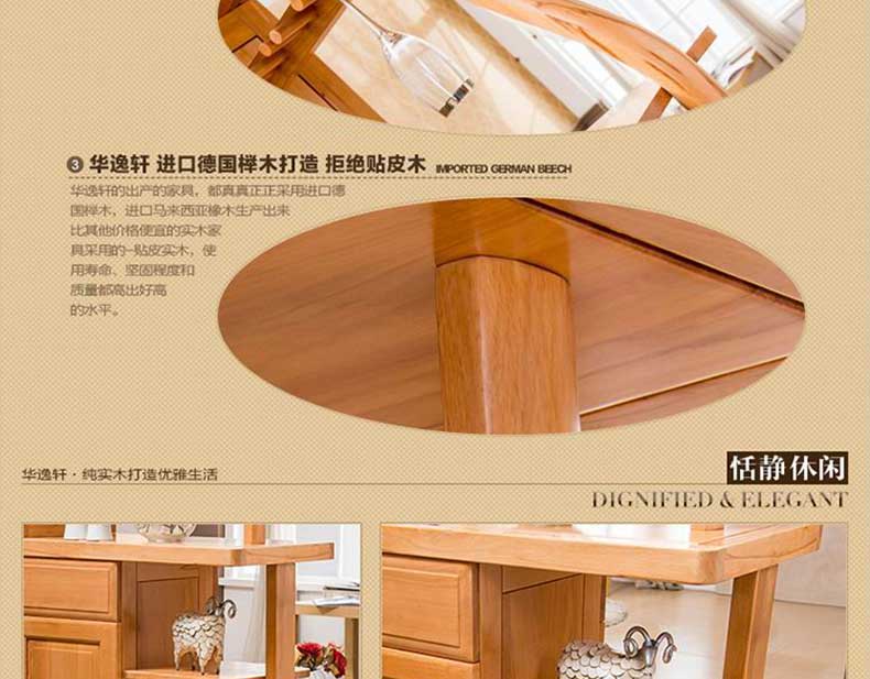 选用材料100%绿色环保,健康无忧环保零甲醛,产品均通过国家质检认证。全进口实木,厚重结实,不贴皮。朴实简洁不华丽,没有繁多琐碎的花式设计,满屋温和的原木色家居,打造一个时尚完美的家。