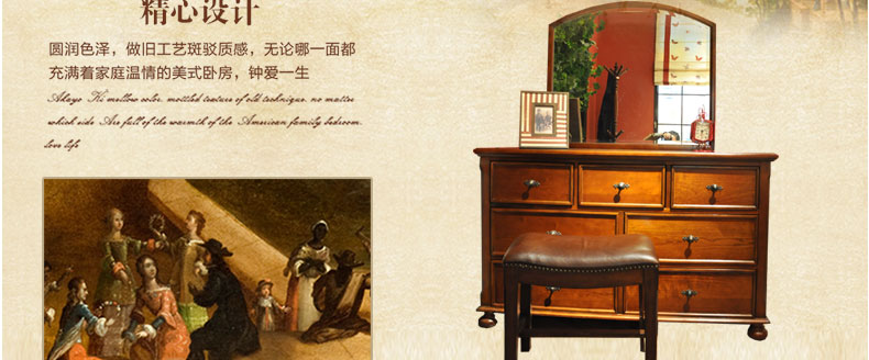 简欧名仕简美系列经典储物仿古高档妆台卧室美式风格妆台H12BT