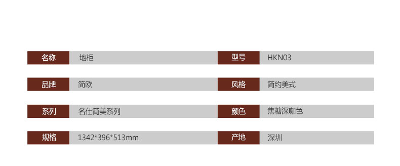 简欧名仕简美系列客厅焦糖深咖色地柜美式风格储物地柜HKN03