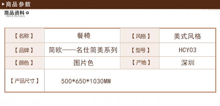 简欧名仕简美系列餐厅休闲椅美式焦糖深咖色餐椅无扶手椅HCY03