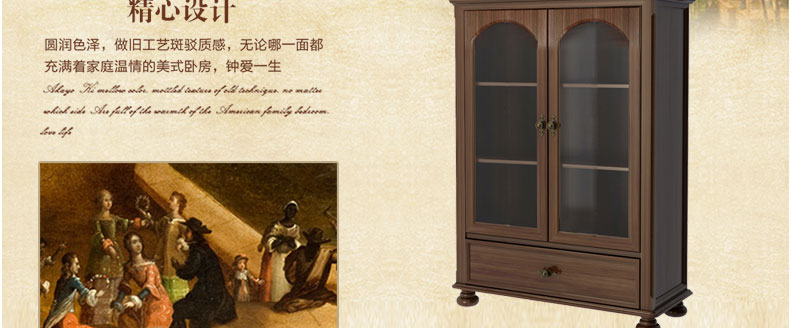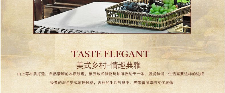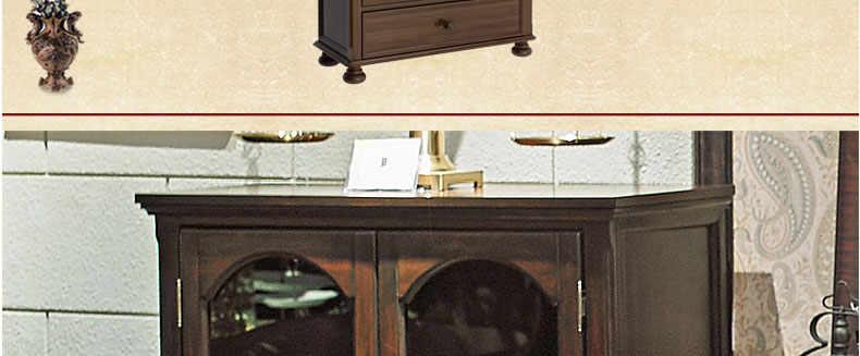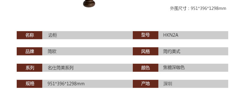 简欧名仕简美系列经典储物边柜仿古客厅焦糖深咖色收纳边柜HKN2A矮边柜
