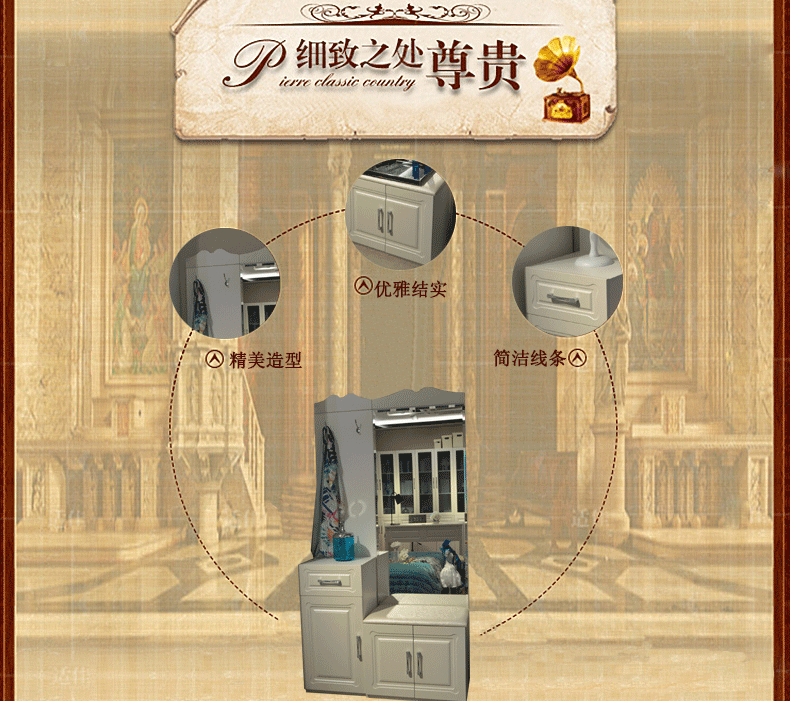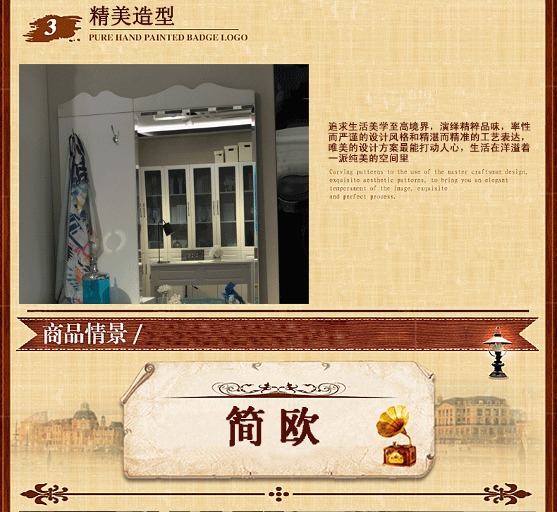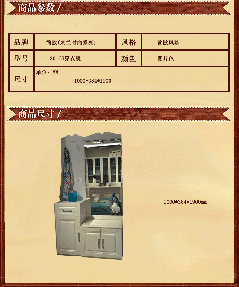 简欧米兰时尚系列卧室储物梳妆镜美式风格珠光色穿衣镜S01CS穿衣镜