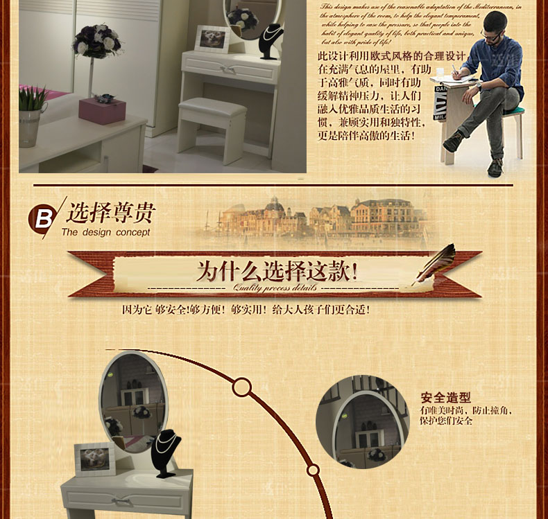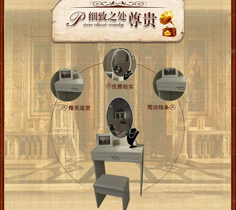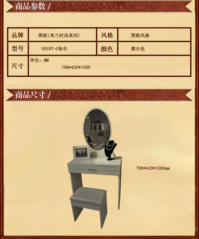 简欧米兰时尚系列卧室高档储物妆台实用创意简欧风格妆台S01BT-G妆台