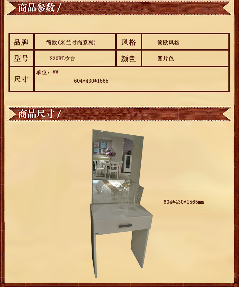 简欧米兰时尚系列经典妆台卧室储物时尚简欧风格妆台S30BT妆台