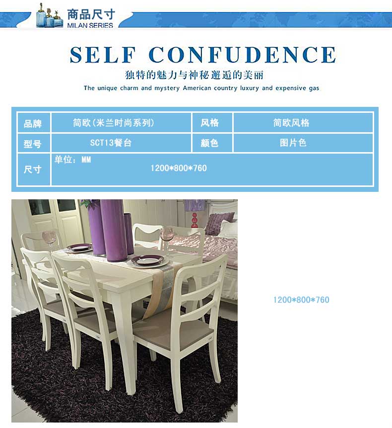 简欧 餐桌欧式简约6人4人长方形浅色餐厅家具餐桌SCT13 餐台