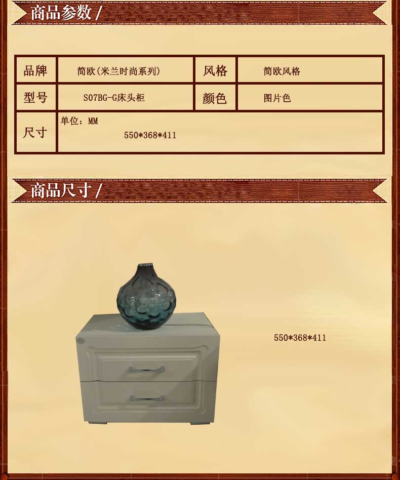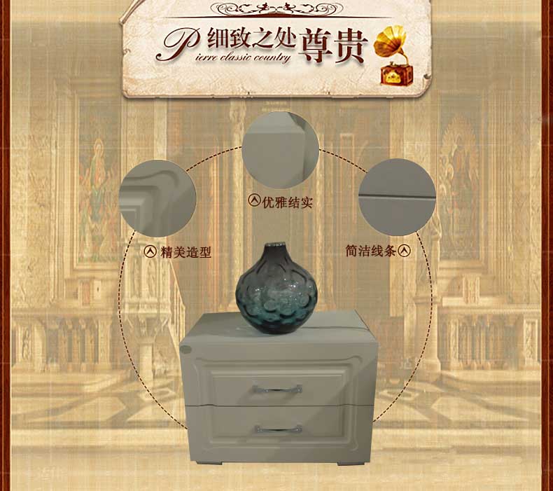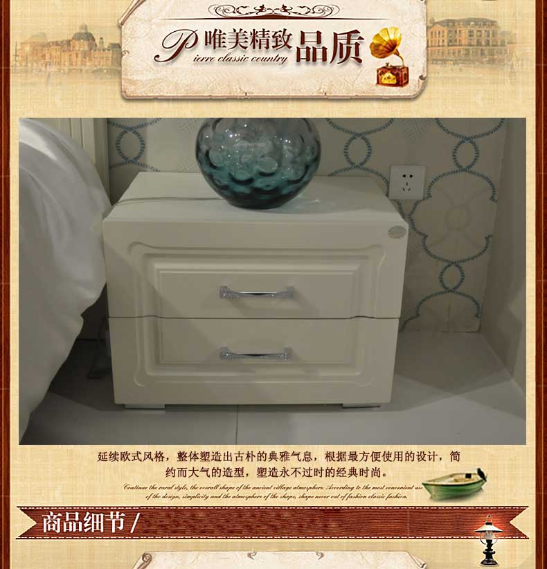 简欧新款简约欧式床头柜古床边柜储物收纳柜厅柜S07BG-G 床头柜