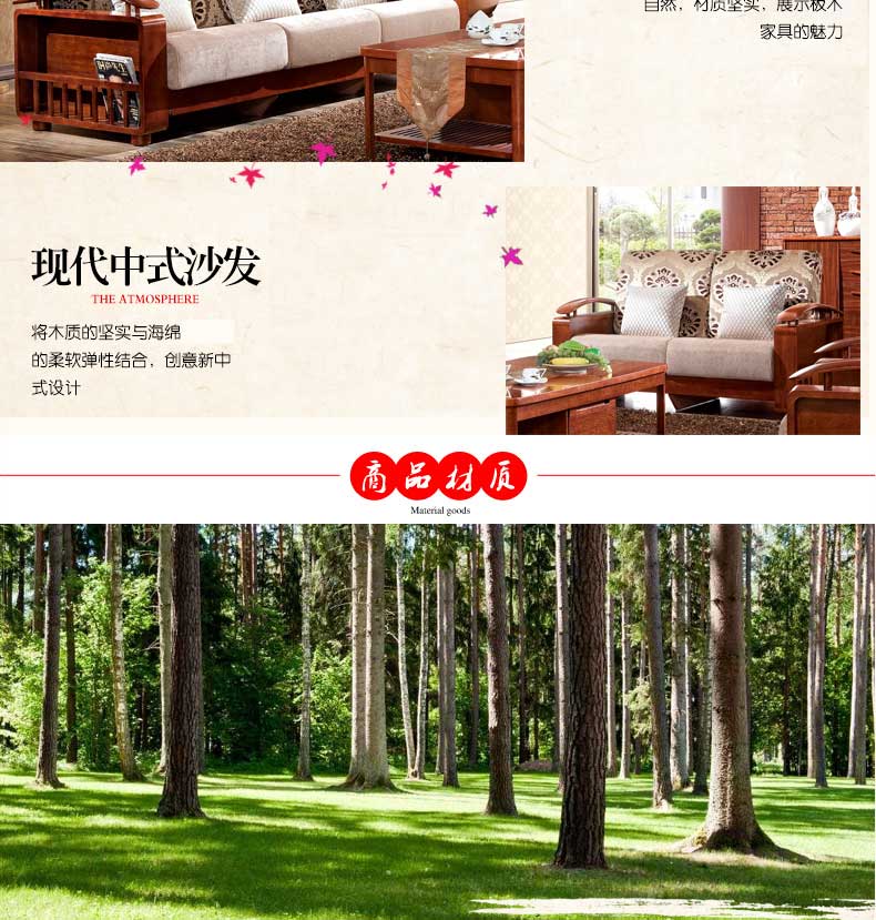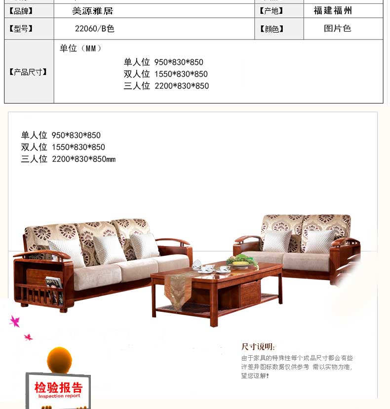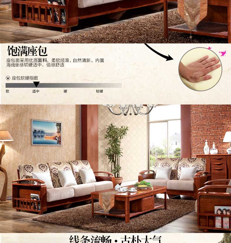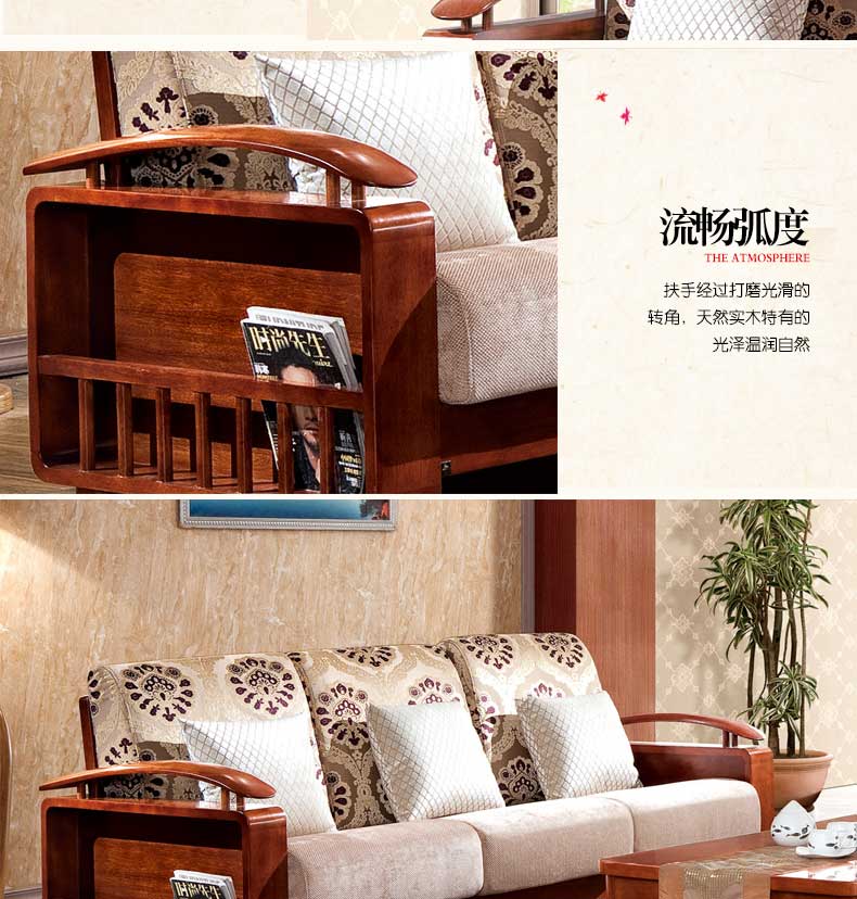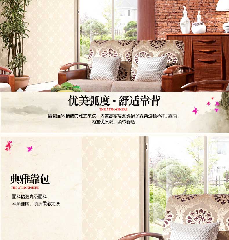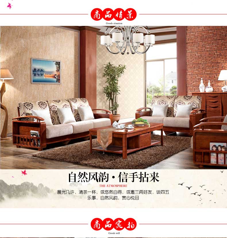 美源雅居 客厅新款沙发组合木质沙发中式沙发组合 22060/B
