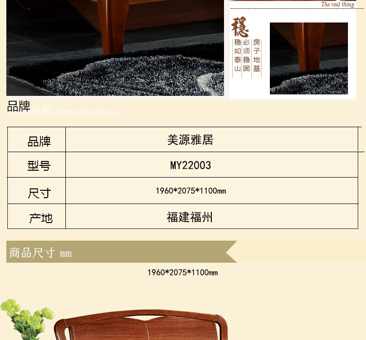 美源雅居 新款双人床1.5米1.8米大床中式床 MY22003