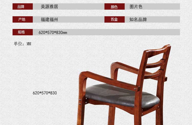 美源雅居 新款书椅书房书椅中式百搭扶手椅 MY22032