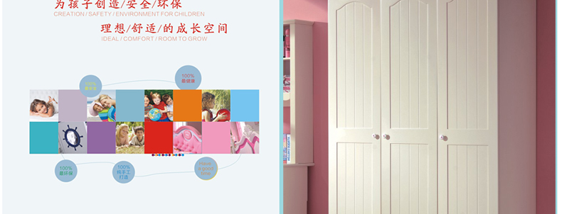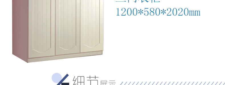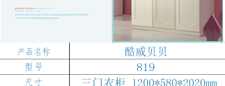 酷威贝贝儿童房大容量储物儿童衣柜经典现代储藏三门衣柜819衣柜