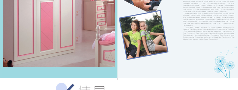 产品定位亲民、时尚、安全环保,每一款产品的设计和生产充分结合青少年儿童的成长特点和生活习惯,安全性能方面做到无微不至,“为孩子创造安全环保,理想舒适的成长空间”是我们的责任和使命。
