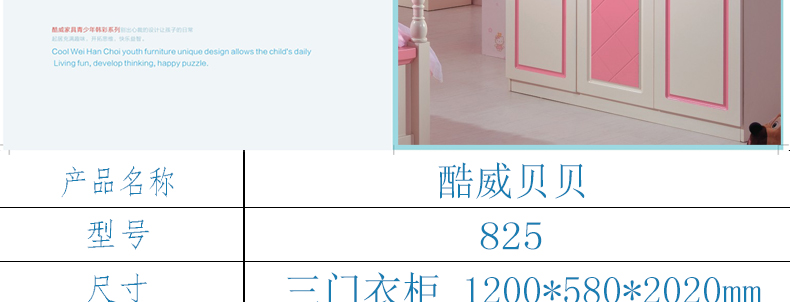 酷威贝贝卧室储物三门衣柜儿童收纳创意衣柜高品质衣柜825