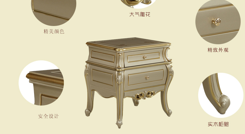 法拉卡丹 新款床头柜 居家简约床头柜 欧式香槟银床头柜储藏柜 拉图-19A
