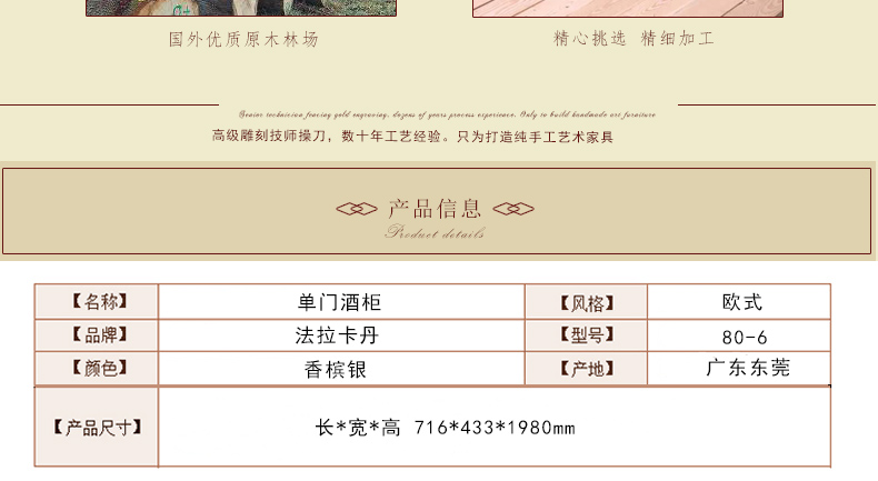 法拉卡丹 欧式单门酒柜 简约大气单门酒柜 客厅酒柜储藏柜 凯莱80-6