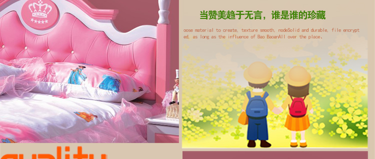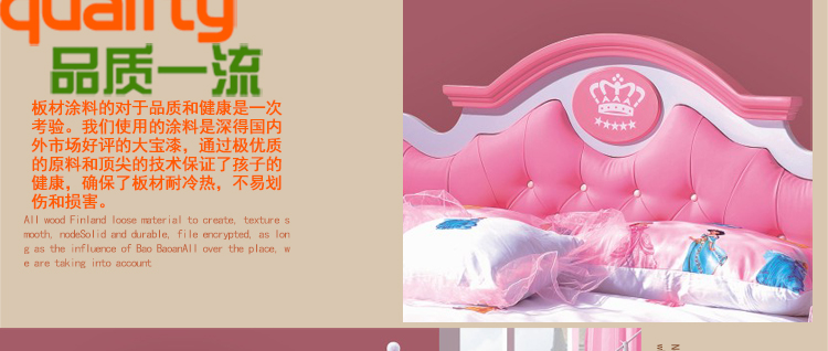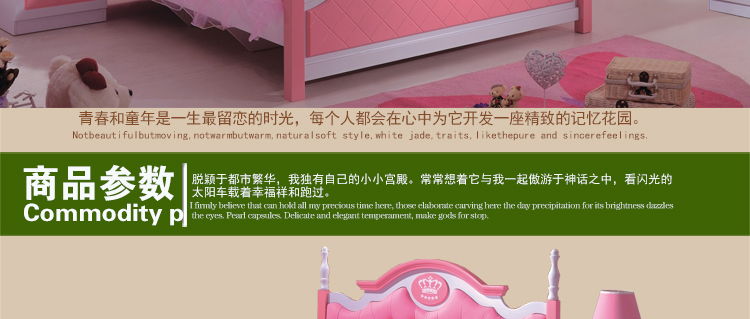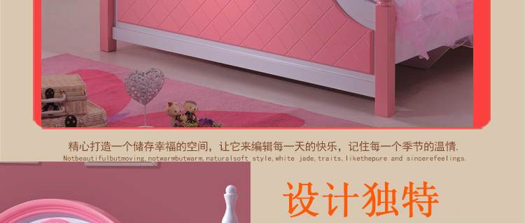 酷威贝贝儿童卧室舒适儿童床粉色公主床1.2米1.5米床826床