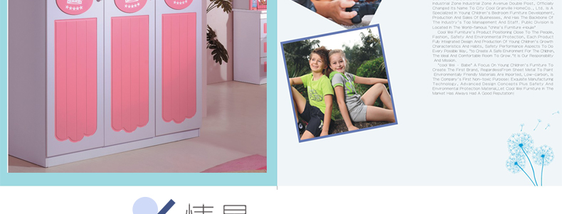 产品定位亲民、时尚、安全环保,每一款产品的设计和生产充分结合青少年儿童的成长特点和生活习惯,安全性能方面做到无微不至,“为孩子创造安全环保,理想舒适的成长空间”是我们的责任和使命。