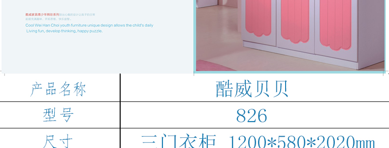 酷威贝贝卧室经典必备三门衣柜现代风格实用儿童衣柜826