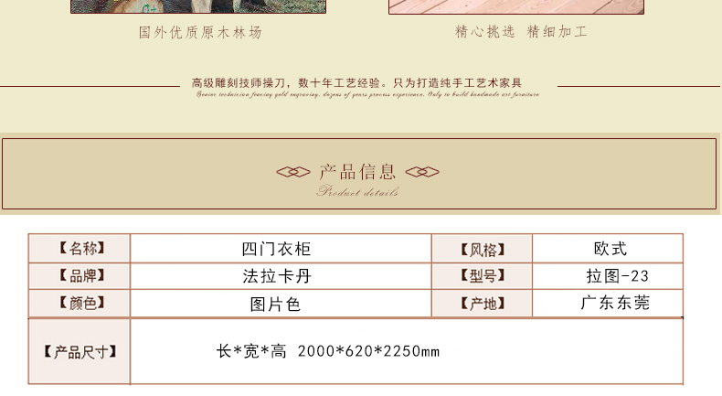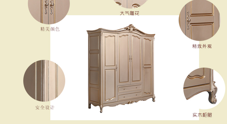 法拉卡丹 新款衣柜欧式组合衣柜四门衣柜 简约大气衣柜 拉图-23
