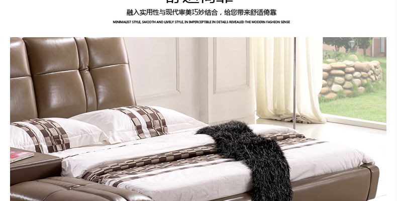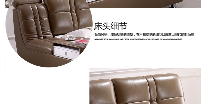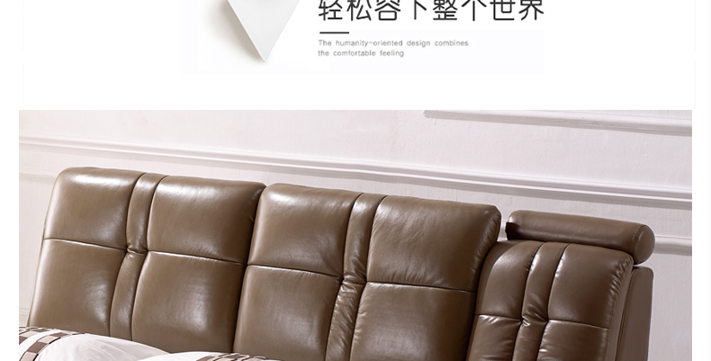 奥琼卧室高档舒适皮艺休闲大床大小户型精致1.8米床双人床8809
