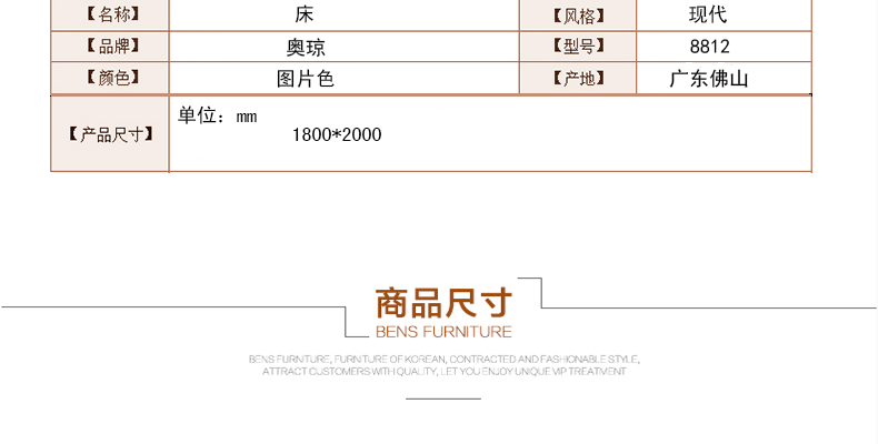 奥琼卧室实用大床婚床1.8米现代风格经典休闲舒适双人床8812