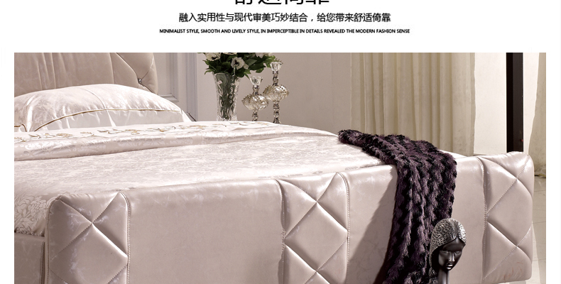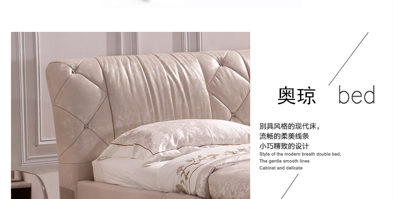 奥琼现代风格高质卧室休闲舒适经典创意双人床1.8米婚床8815
