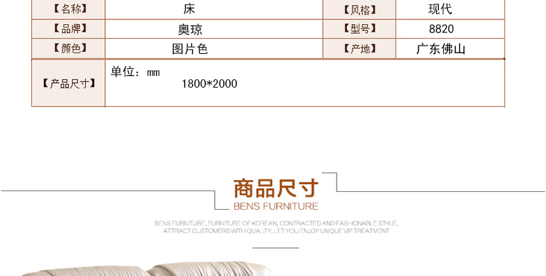 奥琼卧室经典必备休闲现代风格双人床大小户型高品质创意大床8820